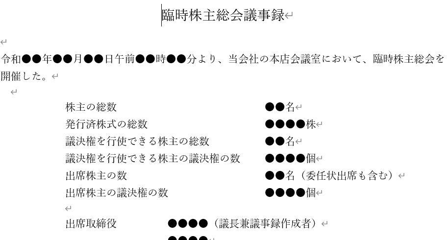 臨時株主総会議事録│会社分割時のフォーマット【無料】