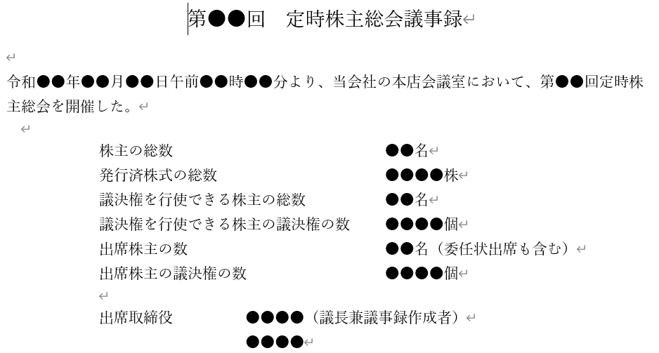 定時株主総会の議事録を作成する際にご利用いただけます。